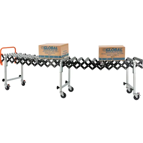 Built with a robust steel frame and durable skate wheels, this conveyor features an adjustable length range from 2 feet 4 inches to 8 feet 11 inches, allowing you to customize the unit to fit your specific space constraints and workflow requirements. The 14-inch width accommodates standard carton sizes and light-to-medium packages, while the 175-pound weight capacity per linear foot ensures reliable performance in high-volume operations. Steel construction provides superior durability and corrosion resistance compared to aluminum alternatives, making this ideal for demanding warehouse environments. The expandable design eliminates the need for multiple fixed-length units, reducing inventory costs and providing flexibility as your operational needs change. Ball-bearing steel wheels deliver smooth, quiet operation with minimal friction, reducing wear on packages and extending conveyor lifespan. The gravity skate system requires no electricity, air lines, or complex mechanical drives, dramatically reducing installation complexity and ongoing maintenance expenses.
