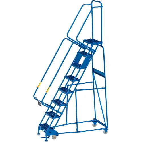Warehouse managers, inventory specialists, manufacturing facility operators, and retail store teams rely on rolling ladders like this model to access upper shelves, perform stock counts, rotate merchandise, and conduct equipment maintenance. Common applications include: